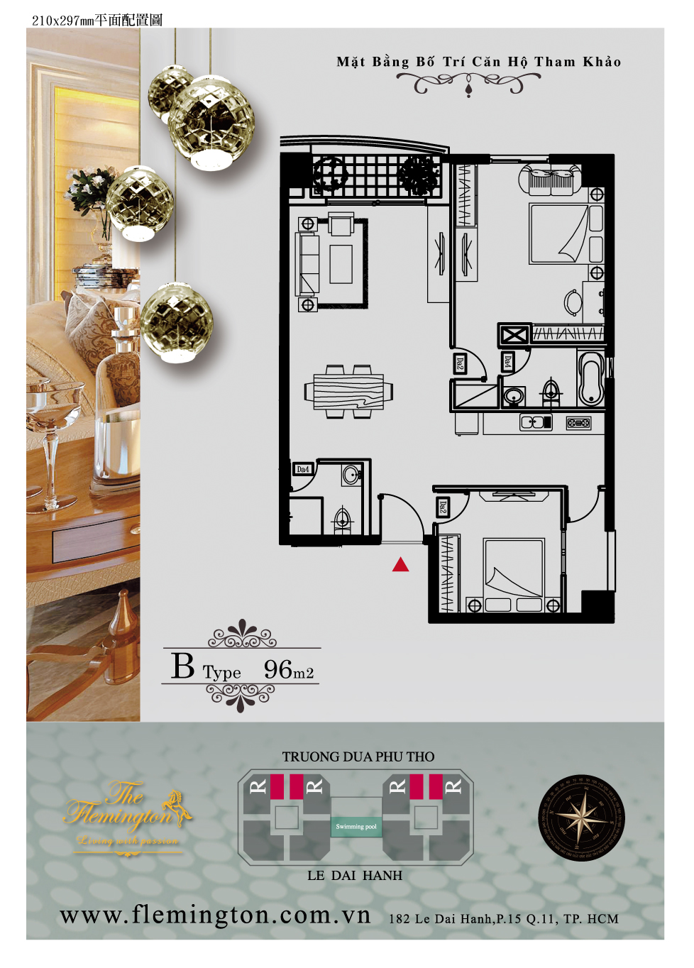 Căn hộ 2 phòng ngủ, diện tích 96m2 Parkson The Flemington Sài Gòn Quận 11